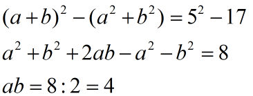 $\Leftrightarrow a^2+2ab+b^2=25$