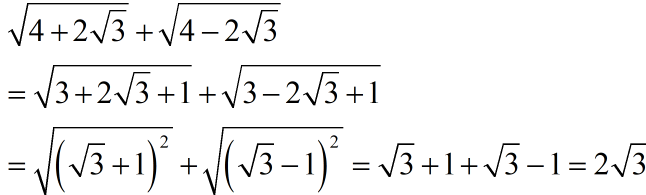 $\sqrt{4+2\sqrt{3}}$ $+$ $\sqrt{4-2\sqrt{3}}$