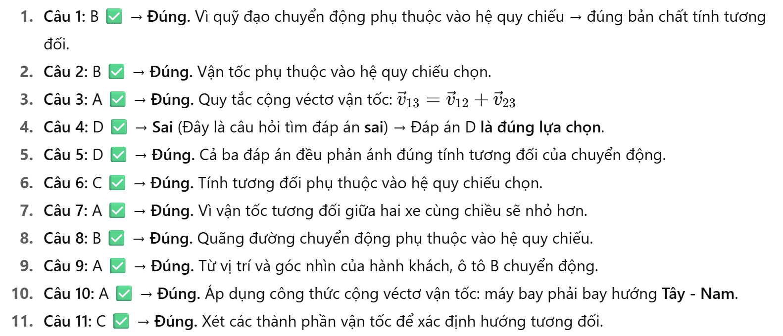 Câu 3: Có ba vật 1, 2, 3. Áp dụng công thức cộng vận tốc có thể viết được phương trình nào kể sau đây?