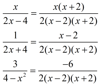 $\frac{1}{2x+4}=\frac{1}{2\left(x+2\right)}=\frac{x-2}{2\left(x+2\right)\left(x-2\right)}$