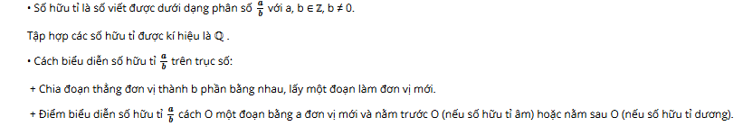 Số hữu tỉ là số viết được dưới dạng phân số $\frac{a}{b}$ với $a, b \in \mathbb{Z}, b \neq 0.$