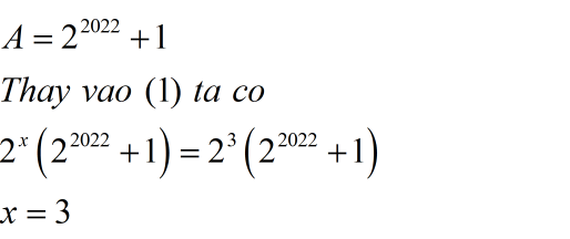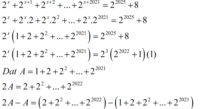 Ta có \( 2^x + 2^{x+1} + 2^{x+2} + 2^{x+3} + ... + 2^{x+2021} = 2^{2025} + 8 \)