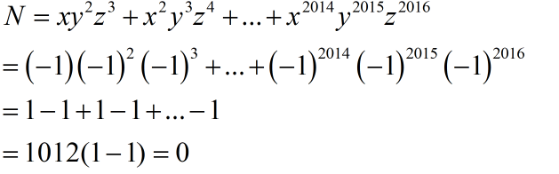 Thay $x=y=z=-1$ vào đa thức N ta được:
