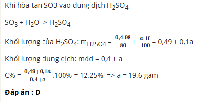 Để giải bài toán này, ta cần tìm khối lượng dung dịch H2SO4 (a) cần thiết để hòa tan 0,4g SO3.