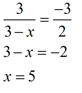 $\frac{3}{\frac{9-3x+3}{3-x}}=2$