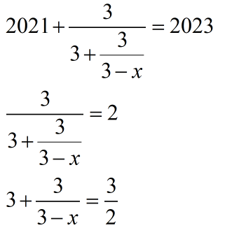 $2021+\frac{3}{3+\frac{3}{3-x}}=2023$