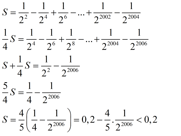 Do đó \( S < \frac{1}{5} = 0,2 \)