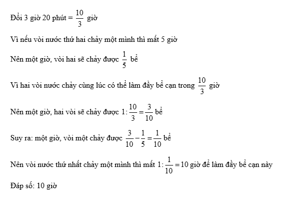 Vậy vòi nước thứ nhất chảy một mình mất $10$ gi