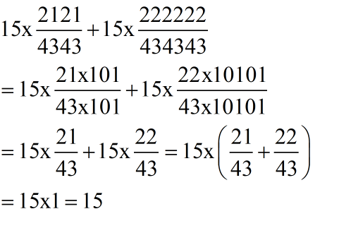15 x 2121/4343 + 15 x 222222/434343