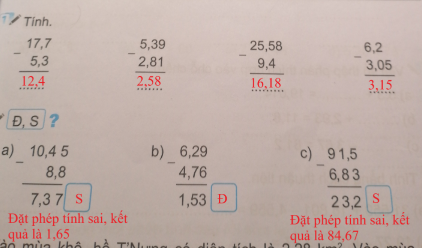Để giải các bài toán này, chúng ta sẽ thực hiện phép trừ số thập phân theo từng bước cụ thể.