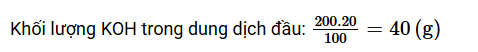 - Khối lượng KOH: \( m_{ct} = 20 \) gam