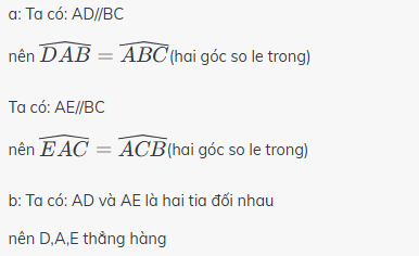 - Vì \(AE\) song song với \(CD\) và \(\widehat{CDE} = 60^\circ\), nên \(\widehat{EAC} = 60^\circ\) (do hai góc so le trong bằng nhau).