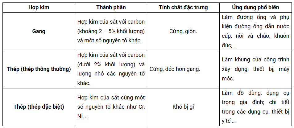 a. **Thành phần và tính chất của gang và thép:**