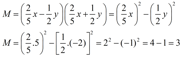$M=\left(\frac{2}{5}x-\frac{1}{2}y\right)\left(\frac{2}{5}x+\frac{1}{2}y\right)$