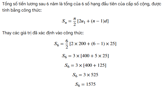 Tổng số tiền lương mà anh Thanh nhận được sau sáu năm làm việc cho công ty đó là 1575 triệu đồng.