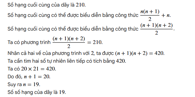 Do đó, số cuối cùng 210 là tổng của các số tự nhiên từ 1 đến 20.