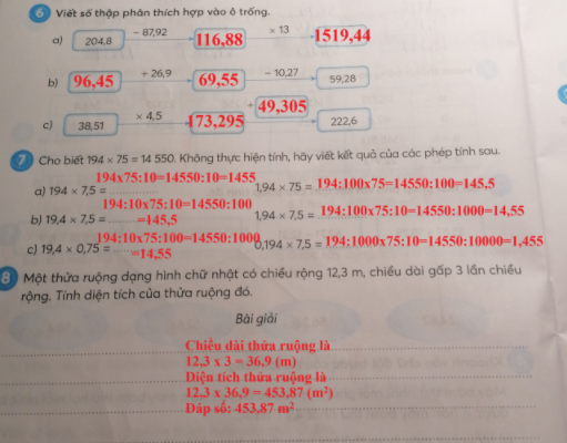 a) $194 \times 7,5 = 14550 : 10 = 1455$