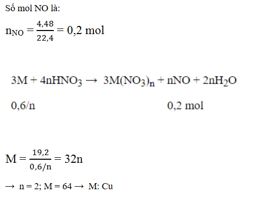 Từ phương trình phản ứng, ta thấy rằng 1 mol kim loại M sinh ra 2 mol khí NO. Vậy số mol của kim loại M sẽ là: