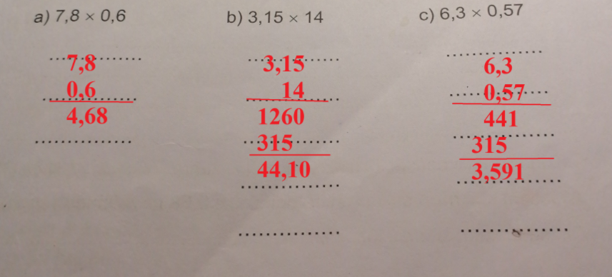 a, $\begin{array}{c}\phantom{00}7,8 \\\times \phantom{0}0,6 \\\hline\phantom{0}4,68 \\\end{array}$
