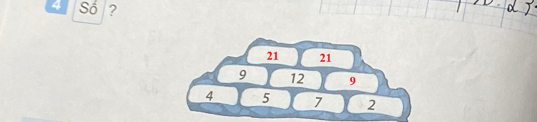 Quy luật: Số ở ô trên bằng tổng của hai số ở hai ô dưới liền kề