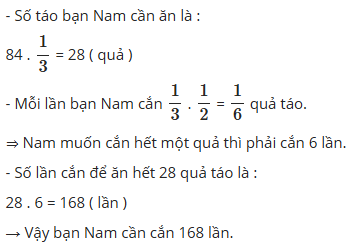 Vậy, Phong cần phải cắn ít nhất 108 lần để ăn hết \(\frac{1}{3}\) số lê trong mỗi túi.
