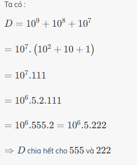 Vậy $10^9 + 10^8 + 10^7$ chia hết cho $222.$