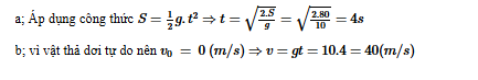 a) Tính thời gian rơi ($t$)
