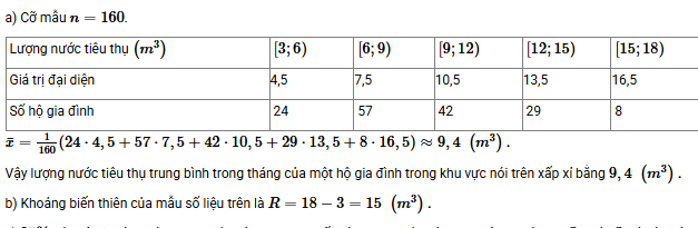 a) Tính lượng nước tiêu thụ trung bình của các hộ gia đình.