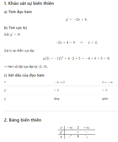 \[ y_{đ} = -(2)^2 + 4 \times 2 + 5 = -4 + 8 + 5 = 9 \]