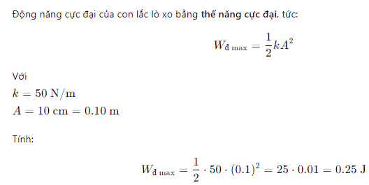 Để tính động năng cực đại của vật dao động trong con lắc lò xo, ta dùng các bước sau: