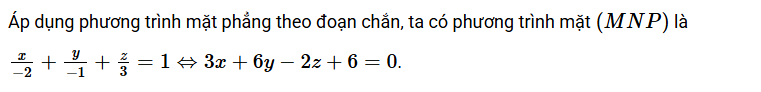 Để tìm phương trình mặt phẳng (P) đi qua ba điểm \( M(-2;0;0) \), \( N(0;-1;0) \), và \( P(0;0;3) \), ta thực hiện các bước sau: