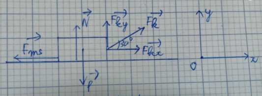- Góc kéo so với phương ngang: α = 30°