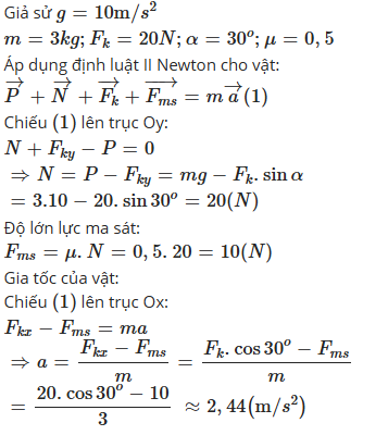 - Thành phần ngang: \( F_x = F \cos \alpha = 10 \times \cos 30^\circ = 10 \times \frac{\sqrt{3}}{2} = 8,66 \, N \)
