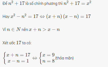 Để $n^2+17$ là số chính phương thì $n^2+17=x^2$.