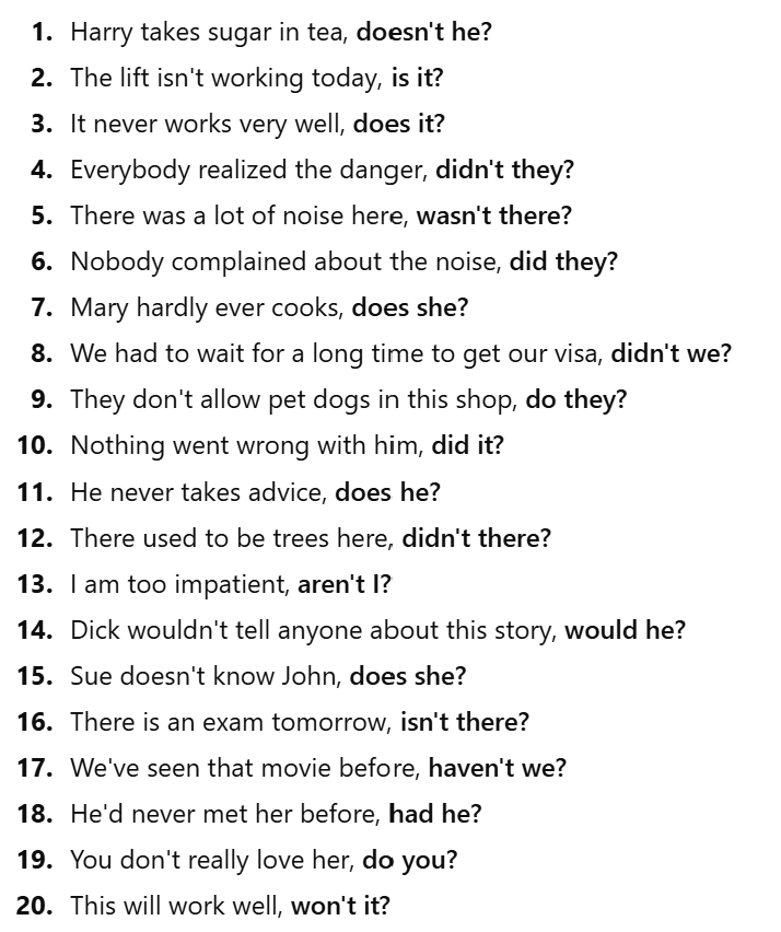 1. Harry takes sugar in tea, does he?
