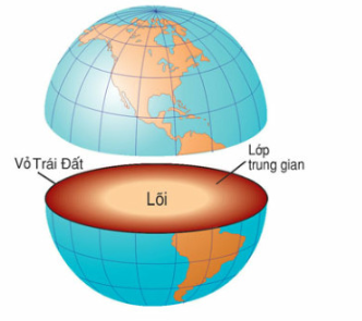 - Lớp vỏ (từ 5-70km): Mỏng nhất, quan trọng nhất, vật chất trạng thái rắn, nhiệt độ tăng dần từ ngoài vào sâu bên trong (tối đa 10000C).