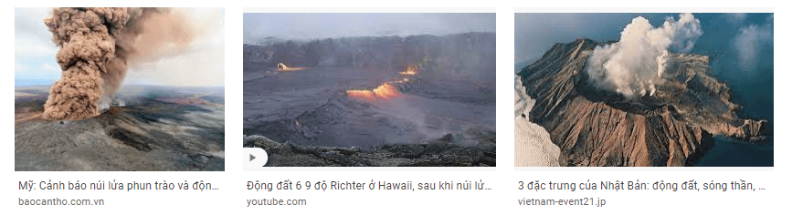 - Những từ khóa thường được sử dụng để tìm thông tin về núi lửa và động đất như: núi lửa, động đất, thảm họa thiên nhiên hoặc các tư liệu khác,...
