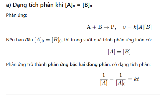 a) Viết dạng tích phân nếu [A]0 = [B]0.