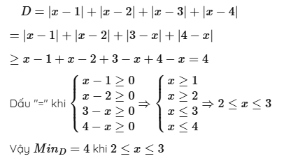 Vậy giá trị nhỏ nhất của \( M \) là 4, đạt được khi \( 2 \leq x \leq 3 \).