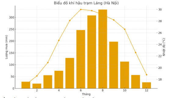 → Nhiệt độ trung bình năm ≈ 24,1°C → Thuộc kiểu khí hậu nhiệt đới ẩm.