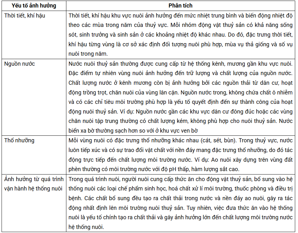 ### C1: Phân tích các yếu tố ảnh hưởng đến môi trường nuôi thủy sản.