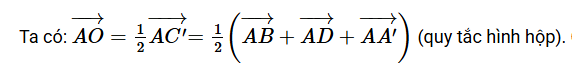 Vậy, \(\overrightarrow{AO} = \frac{1}{2}(\overrightarrow{AB} + \overrightarrow{AD} + \overrightarrow{AA'})\).
