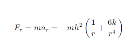 F_r = m a_r = - m k C_1^2 \theta^{-8} (\theta^2 + 6)