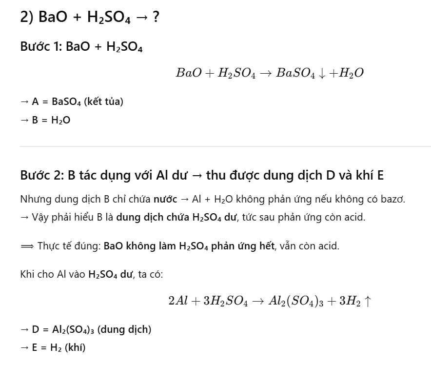 BaO + H_2SO_4 \rightarrow BaSO_4 \downarrow + H_2O