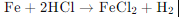 \[ \text{Fe} + 2 \text{HCl} \rightarrow \text{FeCl}_2 + \text{H}_2 \]