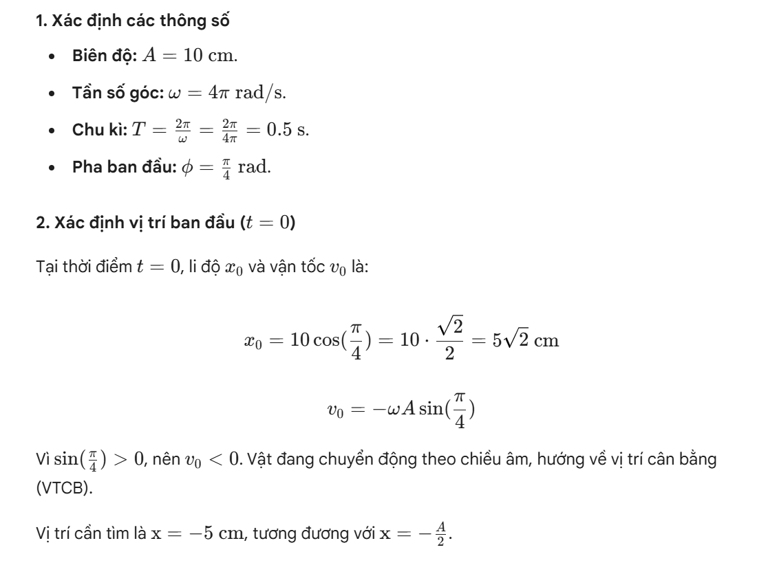 Ta cần tìm \( \theta = 4\pi t + \frac{\pi}{4} \) sao cho: