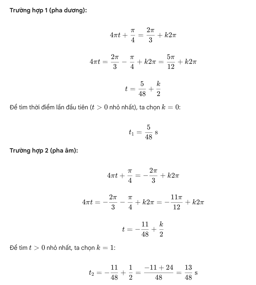 - Trường hợp 1: \( t = \frac{5}{48} \approx 0.1042 \, s \)