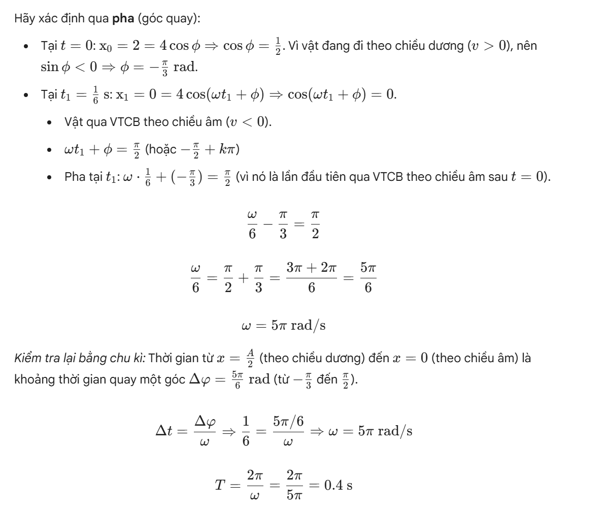 Xét chiều chuyển động (li độ tăng dần), ta tính vận tốc: