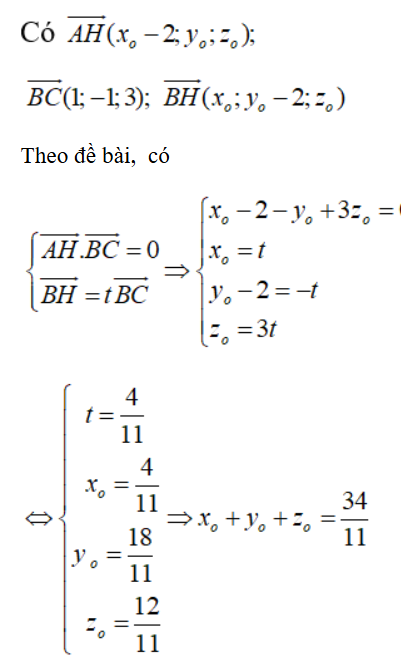 Để giải bài toán này, chúng ta cần tìm tọa độ điểm \( H(a; b; c) \), là chân đường cao kẻ từ đỉnh \( A \) của tam giác \( ABC \).
