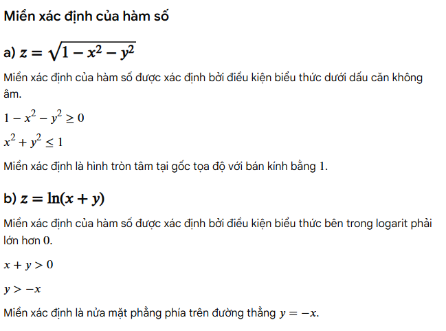 Câu a) Tìm miền xác định của hàm số \( z = \sqrt{1 - x^2 - y^2} \)